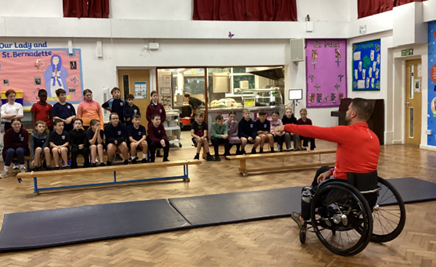 GB Wheelchair Rugby Player, Stuart Robinson, visited us in school to help us complete a sponsored circuit challenge: the whole school participated, enabling us to raise funds to buy new outdoor equipment to enhance our playtimes. Stuart transitioned from leading troops in the RAF to leading troops on the wheelchair rugby court after an injury in Afghanistan in 2013. He showed us what real determination, resilience and perseverance looks like and has inspired us to achieve our goals!