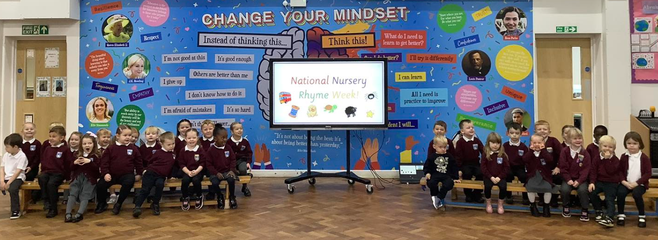 To celebrate World Nursery Rhyme Week, Nursery and Reception collaborated to recite and perform some of their favourite nursery rhymes: we invited parents in to watch them perform. They showed great confidence, speaking clearly as well as using fantastic prosody. The parents absolutely loved it! Their favourite rhyme had to be ‘There’s a Dinosaur’ to the tune of 'Wind the Bobbin Up’. To conclude the week, Year 6 joined Reception: both classes shared with each other their favourite nursery rhymes. It was lovely for Year 6 to take a trip back down memory lane!